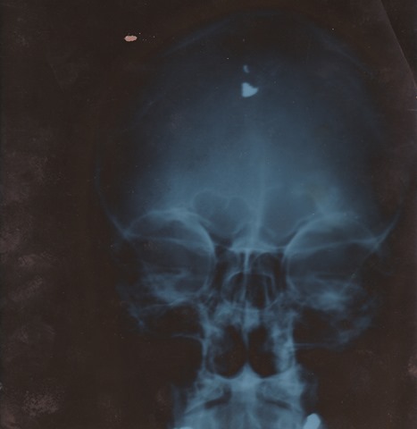 The x-rays of the bullet lodged in the frontal lobe of my brain make the point; life happens to us whether we like it or not. So does death.  So do experiences whose realities are so ruthlessly sudden and savage that when (if) you come out the other side with something resembling your wits about you,  you’ll likely find yourself viewing things from a new perspective.  Kahrmann Head Xray 3