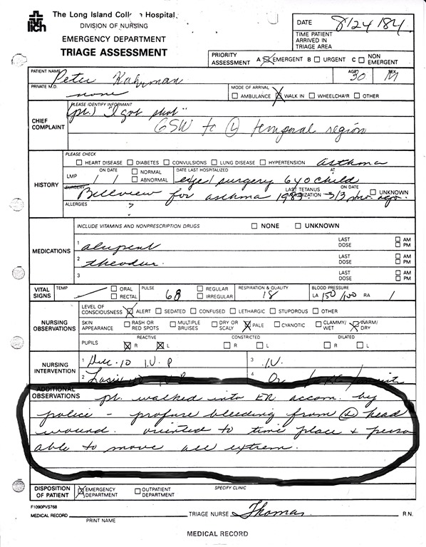 I believe members of the state’s legislature have it in them to stand up and do the right thing. Consider the document below. It is the triage assessment of me the morning I got shot. The circled area says, in part, Patient walked into the ER accompanied by the police. Profuse bleeding from head wound. It was five in the morning when I got shot. When I regained consciousness, there was no one around. I got back to me feet and got myself help. So, if I can stand up and get myself help after being shot in the head at point blank range, I have no doubt members of the NY State Legislature have the capacity to stand up and do the right thing for New Yorkers with brain injuries. The question is, will they?